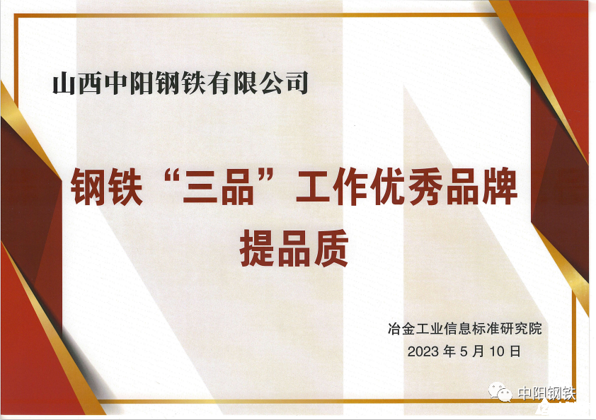日前,第二届钢铁工业品牌质量发展大会发布了中国钢铁工业优秀品牌榜单。中阳钢铁榜上有名,荣获“钢铁‘三品’工作优秀品牌—提品质”荣誉。