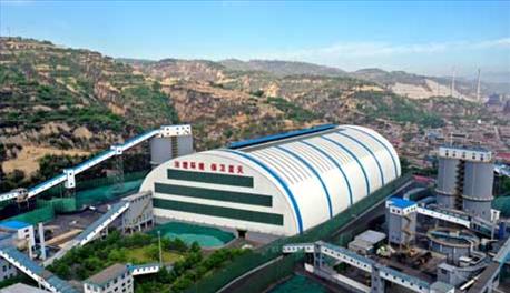 洗煤生产现场,白蓝相间、长249米、跨度120米、高52米、占地面积为27000平方米的煤场大棚,高44.5米、直径26米、储存量达1.4万吨的两座精煤筒仓,巍然矗立在那里,俨然成为了中阳钢铁最靓的风景。