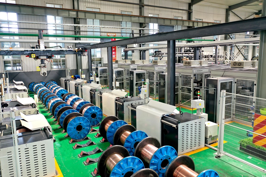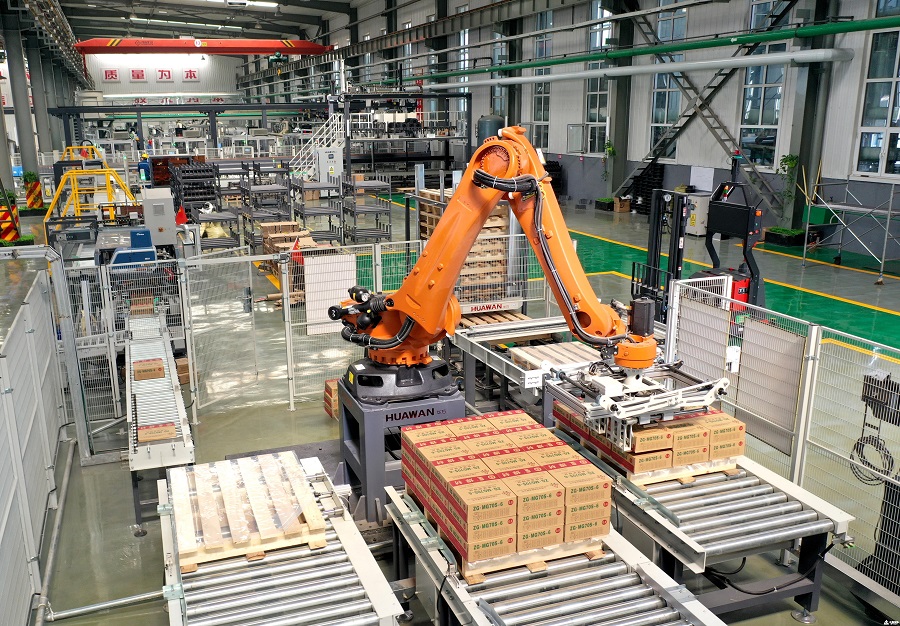 走进中钢公司动力厂焊丝车间,可以看到宽敞明亮的厂房内机器轰鸣,自动化焊丝生产线正在高速运转,码垛机器人挥舞着机械臂,抓取包装好的焊丝产品进行堆码,处处可以感受到“智能制造”的气息。现场,数条自动化焊丝生产线由北向南依次摆放,一捆捆盘条通过放线架与生产设备完美对接,经过剥壳、除锈、拉拔、镀铜、层绕、包装等工序,在智能、自动化工艺的驱动下,一圈圈线材变身一盘盘焊丝产品。