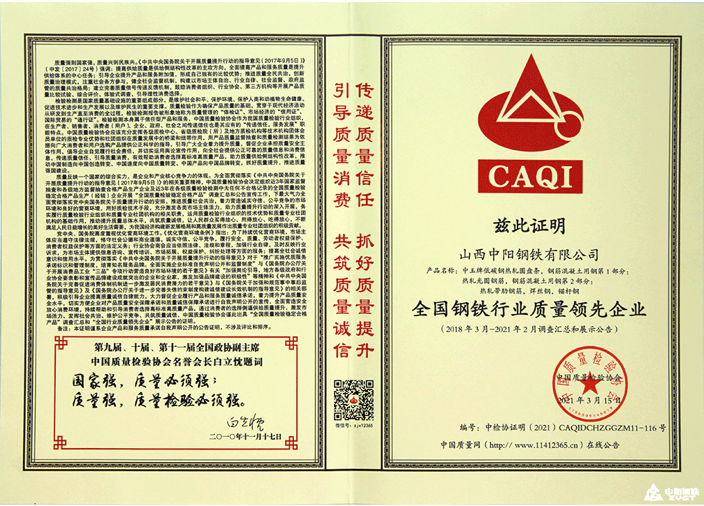 全国钢铁行业质量领先企业