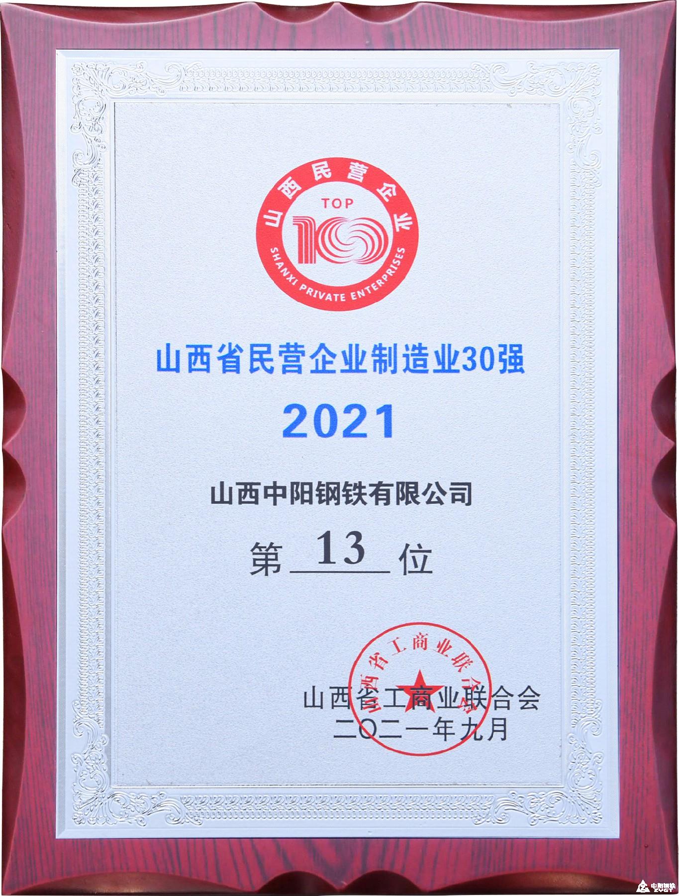 2021年山西省民营企业制造业30强