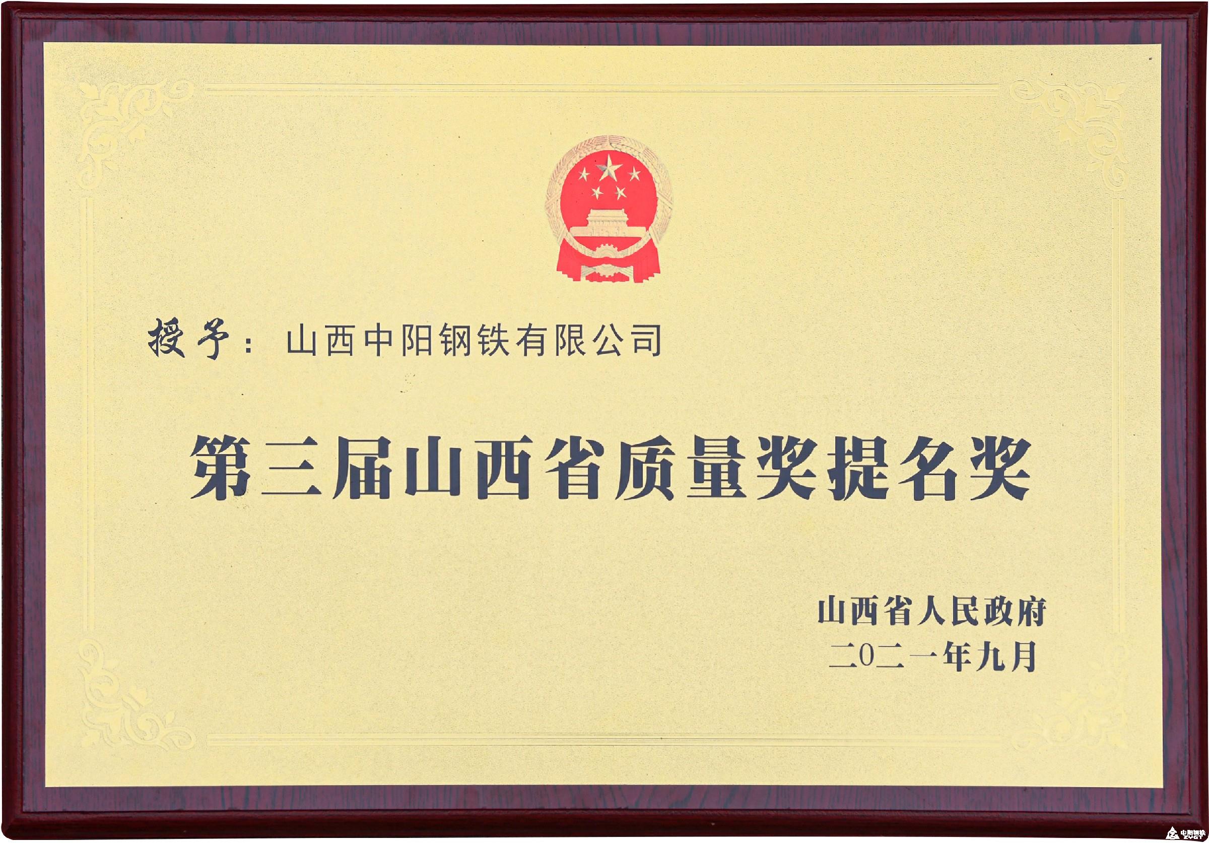 第三届山西省质量奖提名奖