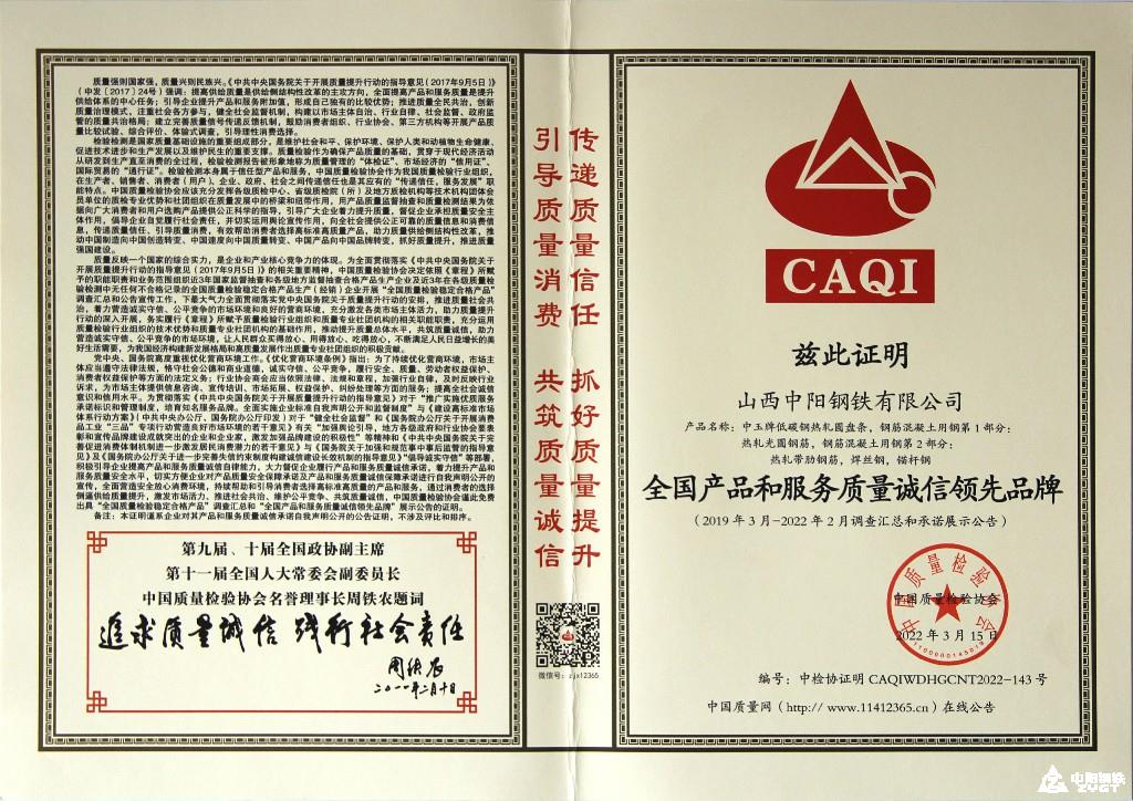全国产品和服务质量诚信领先品牌